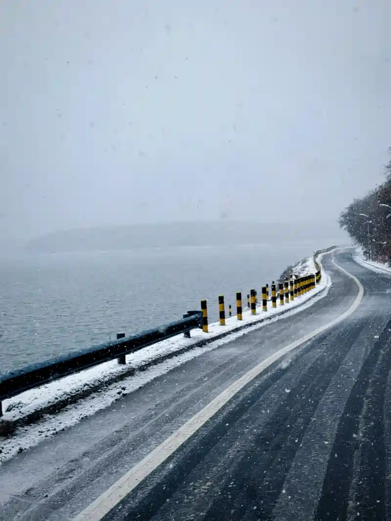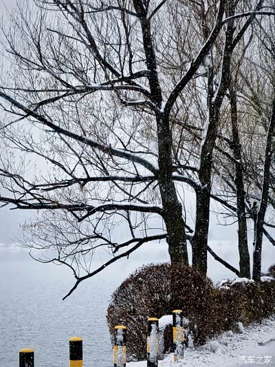 同“坝西”往门口走,路过“北普陀寺”,”,铺着雪的路面和朱砂色的院墙不能太搭!