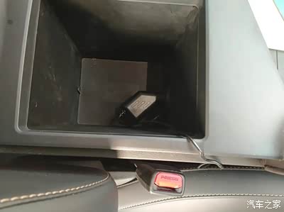 扶手储物盒内的取电口特写
