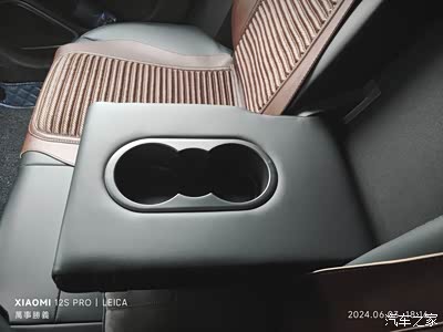 全车座椅为皮质,后排扶手设有两个杯架,实用性不错。