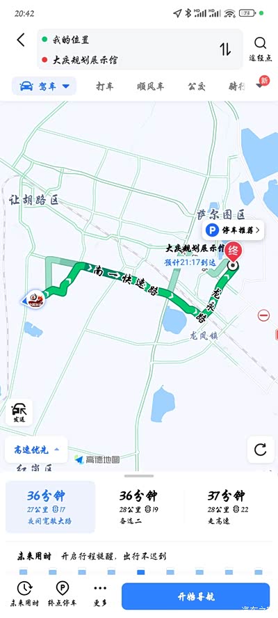 全程27公里,导航预计用时36分钟,时间并未按照导航行驶,去规划展示馆的路太熟悉了。