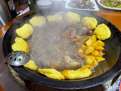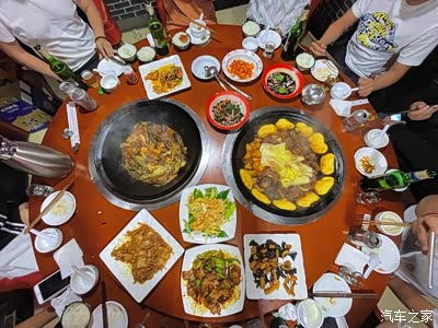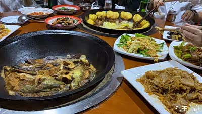 劳累了一天,得亏我们携带很多零食,沿途有食物补充,所以一直坚持到酒店才准备正式吃一顿正餐,我们选择的是东北特色铁锅炖,因为我们一行人比较多,所以选择了炖鸡和鱼,中途还有特色表演,歌曲和二人转表演,表演时间很长,有一点吵闹,不过也是很热闹的。