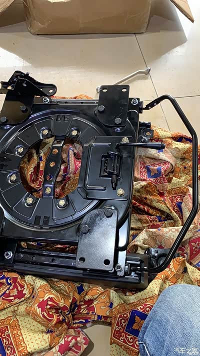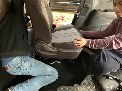 上车后试着旋转发现,原车滑轨调节拉杆比较高,转座椅的时候,下面的塑料盖板会顶着,重点来了,请划下,