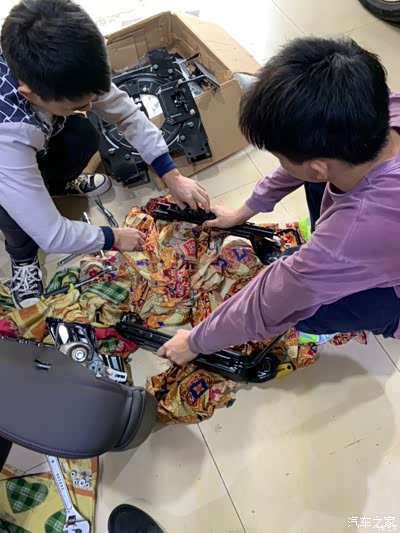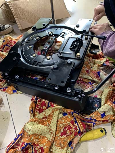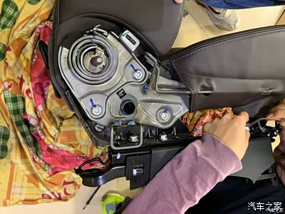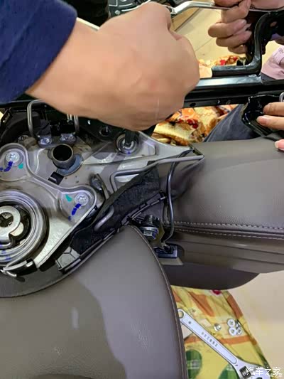 把塑料盖板全都卸了,就能看到座椅和滑轨的连接处了,跟着就是扭拧各种不同的螺丝,分开座椅和滑轨。没有工具的车友都是到外面店搞的,洛阳老哥比较厉害,单干搞定!
