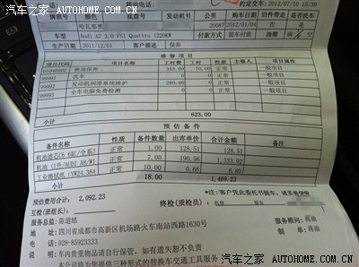车现在开了半年多了,2W多公里里面基本是一半在高速上过的,一般保养大该费用在2000左右。