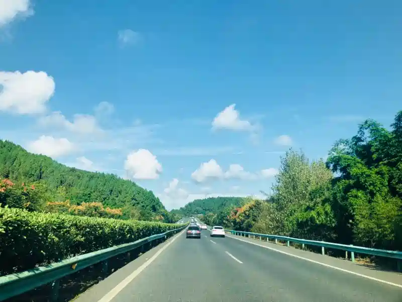 在阆中去往都江堰的路上,自10月2日出门,一路走来,第一次见到久违的蓝天白云,心情大爽,但好景不长,随着车往前走,天又阴了。
