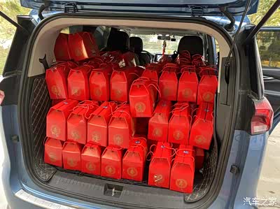 过新年适逢给父亲过寿,过寿随手礼不能少。特别去定制了当地比较有名气的糕团点心礼盒,过年吃糕团寓意也好。糕团厂家过年也没空送货了,自己开着大通去拉回来,满满一车,一路回来满车是糕团的香味,丰收的味道。要是用平常家里的小车这些礼盒一个车肯定是装不下了。幸亏买了这款大通车,G50第二排空间没使用的情况下就妥妥地全部装进去了,回来后将点心礼盒重新码整齐,还能装下酒席用的酒水。拉到酒店每个座位上都摆放好,人手一份随手礼。祝大家新年大吉!
