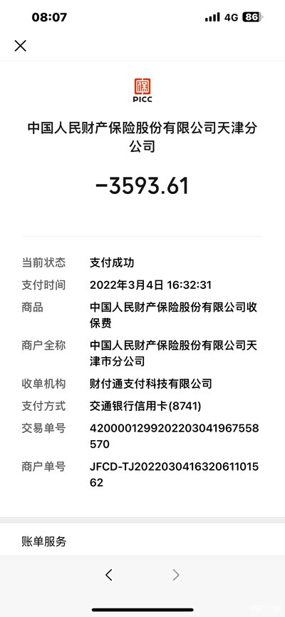 保险收最后价格是3600,不是很多,因为我指定要的