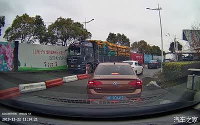 排了一会队,看到前方有车子驶出 (大卡车