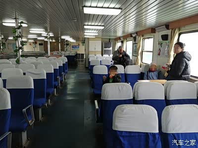 开上了船,按照指挥员的指示停好车,我们就迫不及待地上到船舱四处张望。由于船程不远,除去车辆上下船的时间,大概也就15分钟,其实大部分的人都选择留在车内——只有我们是刘姥姥逛大观园