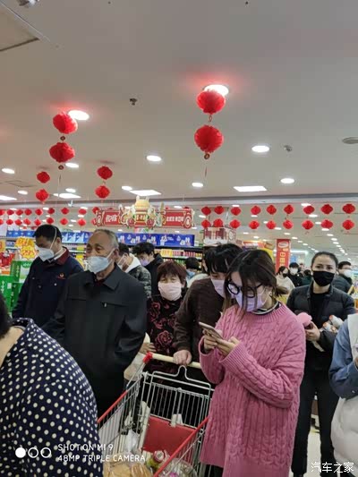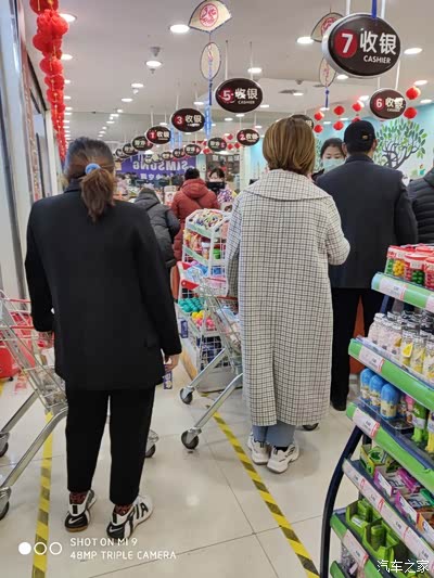 好在都带这口罩,拍得好长的队,心里想赶紧结账回家阿