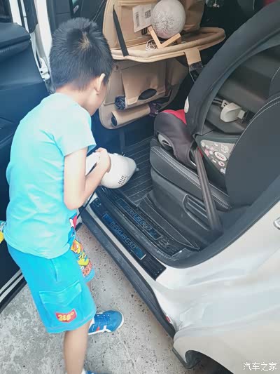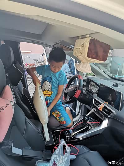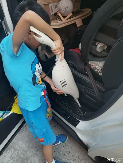 平时在外面都是普通洗车,最多洗车时帮忙里面吸尘器吸一下,但是带着孩子长途出行少不了零食的陪伴,孩子在车上吃零食避免不了吃的车内到处都是零食碎屑。趁着这次国庆小长假带着儿子给大白车内好好打扫一番。工具:清水,毛巾,清洁软胶,吸尘器。儿子听到要给大白打扫,连小伙伴邀玩都不去了,帮忙把大白里面用吸尘器洗干净了,认真的干完活才去找小伙伴玩耍。
