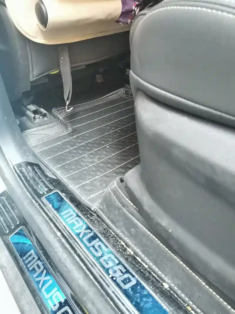 先把上层的丝圈地垫拿出来,抖抖灰。下层的车垫就放着让儿子用吸尘器吸吸灰。