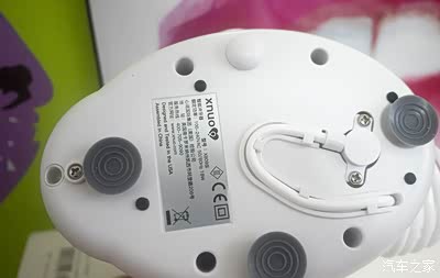 洗牙器经常处于洗面台台面,所以心诺做了一定的防滑处理,在产品下端设计了三个章鱼吸盘。在底面做了产品标签展示,标注了型号(X809)、功率(18W)、厂址和联系方式。