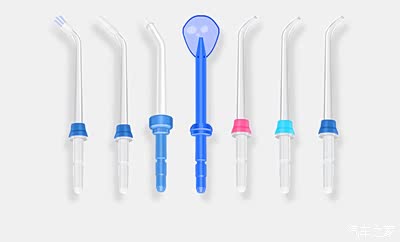 心诺X809是一款家用型洗牙器,相对于便携式喷嘴最为直观的区别,共有7种喷嘴,三只普通高压喷嘴,一只牙斑克星喷嘴,一只舌刮,一个矫正喷嘴以及一个牙周袋喷嘴配备十分齐全。三只普通高压喷嘴使用了不同颜色来区别,避免交叉使用。