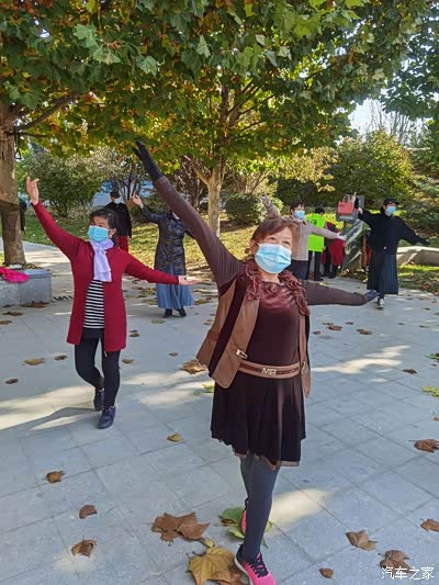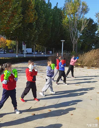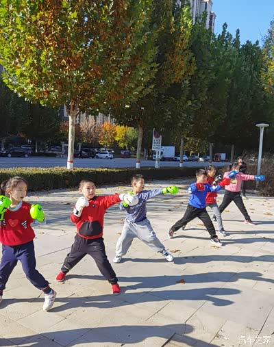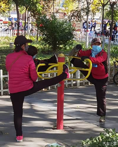 秋季,天气渐冷,小区体育活动活动场所,锻炼身体的人很多,有练拳击伸展手臂的,有练健身器材。