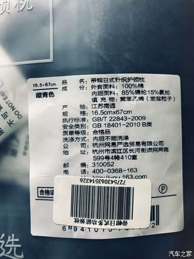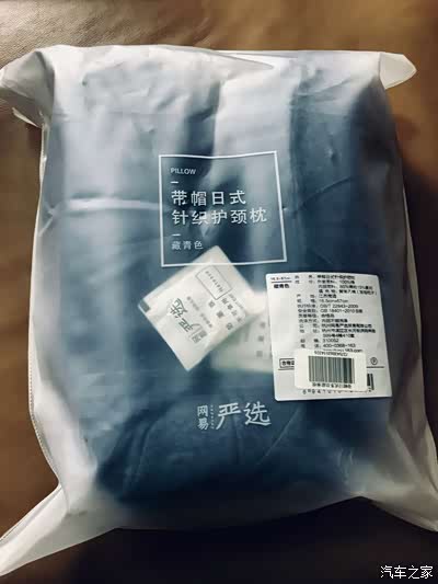从收到试用通知短信,到收到实物,刚好一周时间。拿到手上的带帽多功能颈枕为藏青色,由一层防水塑料包装袋包装,出自网易严选。