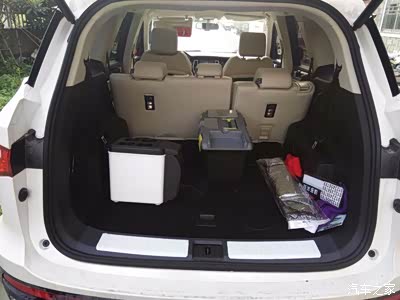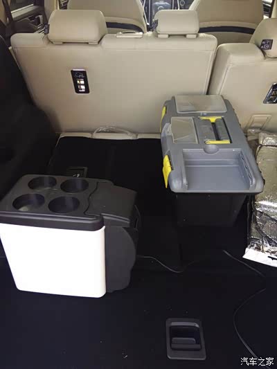 车内我放置了一个车载冰箱和一个工具箱。