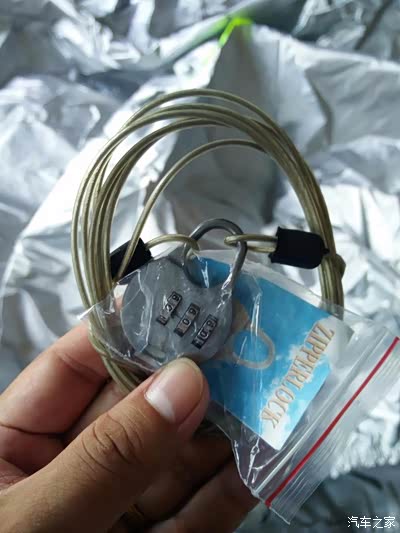车衣的锁,还整串密码锁。这个是用来收紧车衣的防盗的。