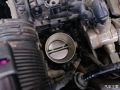 将进气管拆开以后,让我看看这个节气门,只要露出节气门,检查以后发现很干净,根本不需要清洗。还是白花花的很干净。