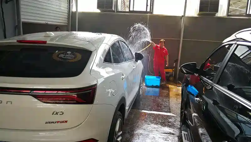休闲时刻,不知不觉从提车到现在已经差不多1年多了,她跟着我没少费力气,天天东奔西跑,付出太多太多,看了看里程,刚好今天周四不用去上班,于是开这我的爱车就去4s店做保养,洗洗澡,犒劳犒劳她,找到当时的销售顾问,然后一起来到售后保养点,总店这边售后的师傅们服务是相当不错得,来的早车也少,都不用等直接就登记完 开始做保养。还赶上他们售后做活动,工时打折,还送了玻璃水,做日常规检查,附加几张师傅们认真工作的场景,感觉还可以。