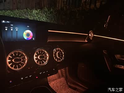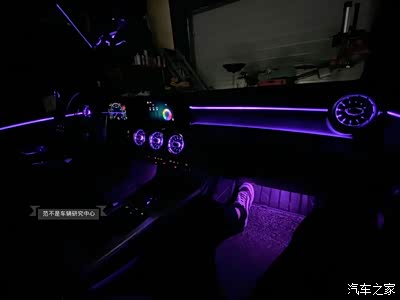 内饰篇,64色原厂氛围灯,前后排涡轮出风口,背椅灯,双门无钥匙进入,香氛系统。