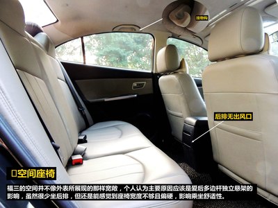 【最不满意的一点】尾部紧短,不太协调,影响整体外观!另外后排空间略显上狭小,座椅的舒适感不强!