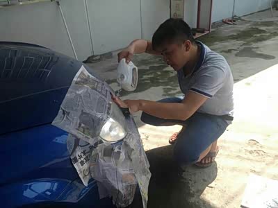 在马家买回来的大灯翻新液,动手自己翻新,想不到效果惊人