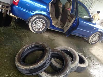 换下的四条旧胎,两个牌子,两条普利司通,与两条台湾玛吉斯好花了,但普利还好,但由于南海工宫车友介绍了买三送一,加上新换胎与旧胎尺寸更改,为达统一型号全换四条才927元