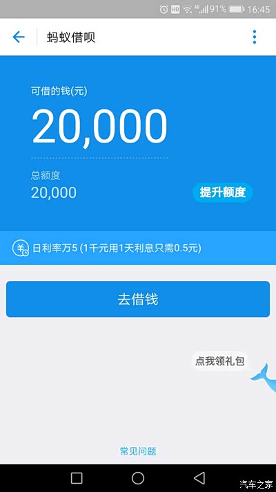 很多人说那车可以贷款吗,我说支付宝可以贷款。我的蚂蚁借呗就可以贷款20000大洋。利息也不高,借款20000大洋一年的利息也就2000元。比小额贷款公司省一倍钱。