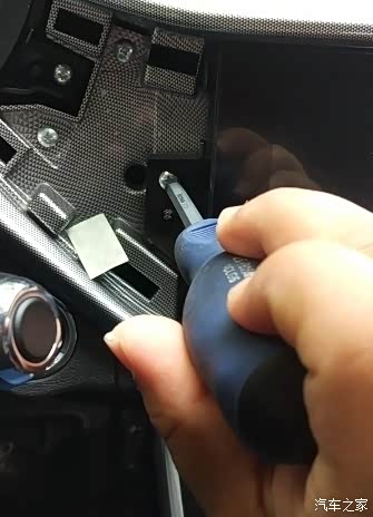 用撬棍撬开之后,里面有一颗固定出风口饰板的螺丝拆掉。然后同理,左右两边的这块板和螺丝都要拆掉