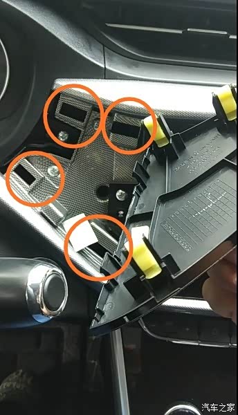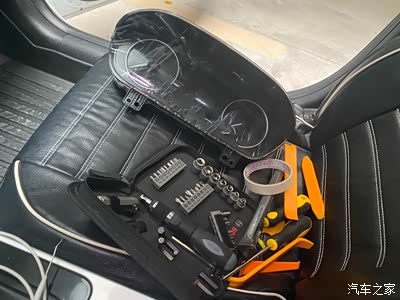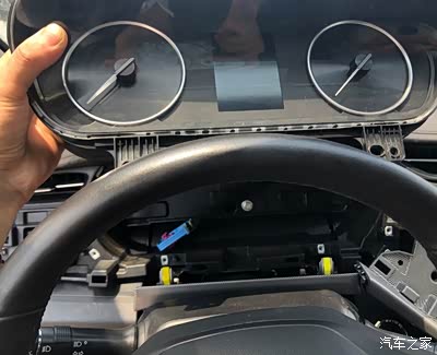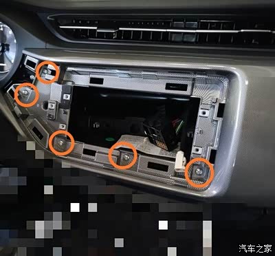 这两个位置的螺丝拆除,然后仪表盘外护框整体往外拉,就把外护框拆除了。之后仪表盘下发还有两个固定螺丝也要拆掉,忘记拍照了!