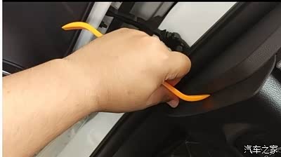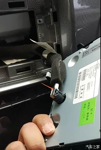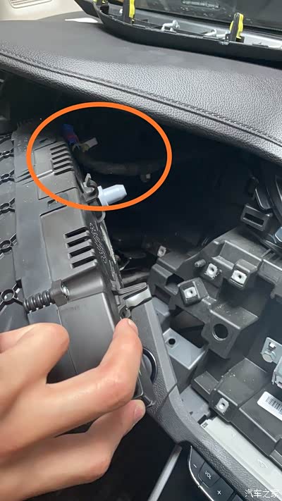 然后打开车门,拆这个中控台三角板,如图位置有个预留口