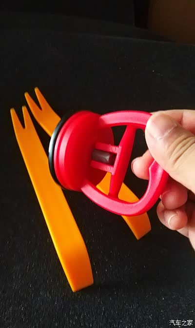 先拆除这块黑色三角板,用商家赠送的吸盘。(技巧:吸四个角,能轻松拉开,不要吸正中间)