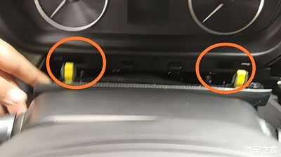 把仪表盘下发这个饰板拆掉,如图用撬棍桥出这两个卡扣