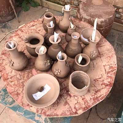 已经制作好一半的陶罐,还没有烧制。
