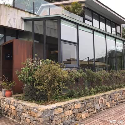 整体玻璃的设计,仿佛和山林融为一体了。