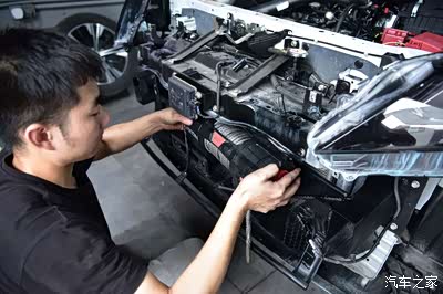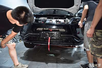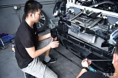 装好了以后就来安装绞盘吧,这安装可要小心啊,千万不要碰到上面的毫米波雷达,太贵啦。