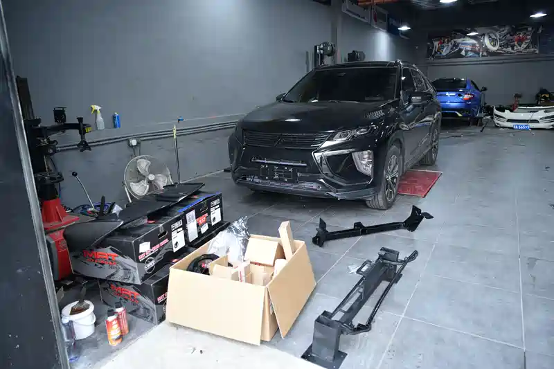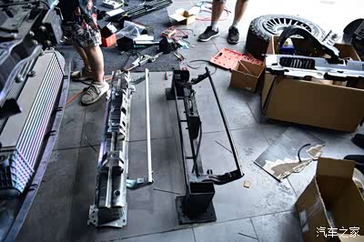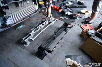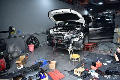 其实我早就已经有了改装方案了,所以看完绞盘以后就让师傅开始拆卸前保险杠了。为了能更好地进行固定,所以我决定将前防撞钢梁进行重新的定制,从而将绞盘固定在定做好的防撞钢梁上。