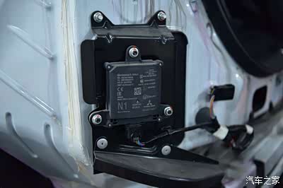 这边上我又发现了一个控制盒,这个就是并线辅助控制模块,也就是后视镜上那个后方来车提醒的电脑,据说价格也不便宜哦。