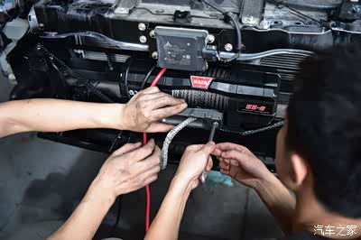 至于绞盘的线束,师傅用的都是最好的铜线,因为绞盘工作的时候,需要很大的电压,所以细线很容易烧掉,这也是为了安全和可靠性嘛。