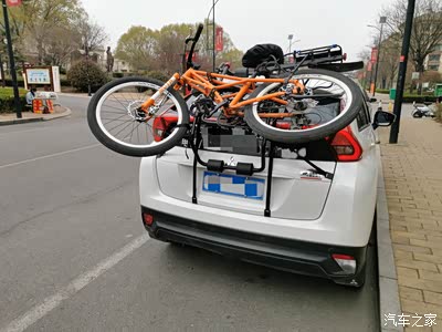但是自行车也有个问题,就是太大了,一般车里放不下。有的SUV有车顶行李架,可以把车架上去,不过这会增高许多,碰到限高的地方就麻烦了。经过我有趣的调研,发现了一个有趣的工具——车尾架。这个东西还是很方便的,只是见过的人可能比较少。