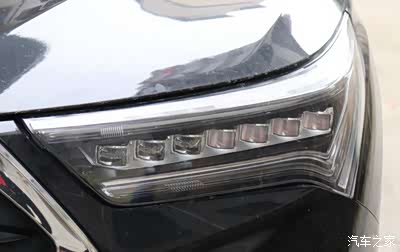 RDX的前大灯由七颗LED透镜光源组成,可以看到有四颗略泛白的是近光灯,另外三颗透明一点的是远光灯,因为投射角度不同,所以这个图片中看上去近光灯和远光灯区分的很明显,但实际看的话七颗LED透镜很相似统一,这个大灯的颜值还是很不俗的。