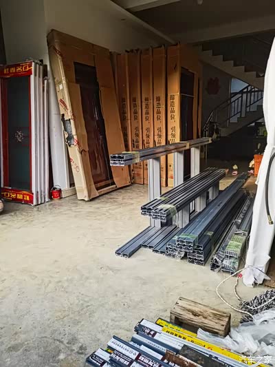 为了方便铝合金钢管的支点,他们自己焊了龙门架,你会发现几乎所有做门窗的都焊了这个货架
