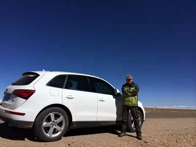 先来张我与爱车Q5的合影,在青藏高原蔚蓝天空下的天路上