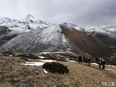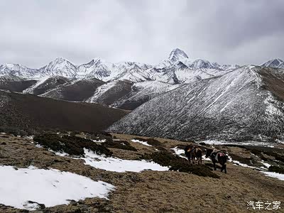 前方即为雅哈垭口,贡嘎雪山主峰带着白帽子。