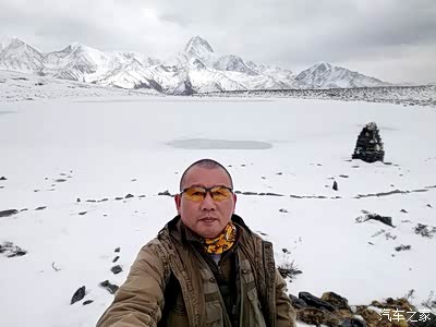 到达冷嘎措,先自拍一张。三月的冷嘎措还处于冰冻状态,湖面是厚厚的一层雪,无法看到贡嘎雪山的倒影。