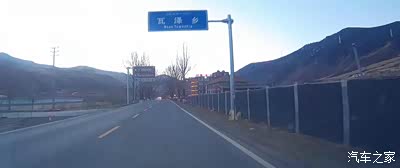 停车拍摄山谷对面的小村
