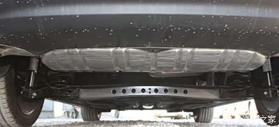 副车架采用非全框式的副车架。副车架采用双层冲压钢焊接而成,镂空式的处理更有利于减轻副车架的重量。副车架通过多点的硬连接与车身相连,硬连接能够有利于提升转向的响应性,同时非全框式的副车架也能够降低车头重量。