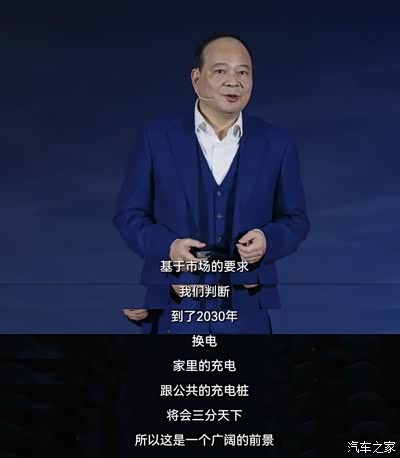 基于市场的要求,我们判断,到了2030年,换电、家里的充电,跟公共的充电桩,将会三分天下,所以这是一个广阔的前景。