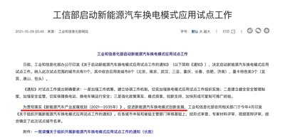 合肥支持新能源汽车换电模式的推广有理有据,2021年10月工信部就启动了新能源汽车换电模式应用试点。